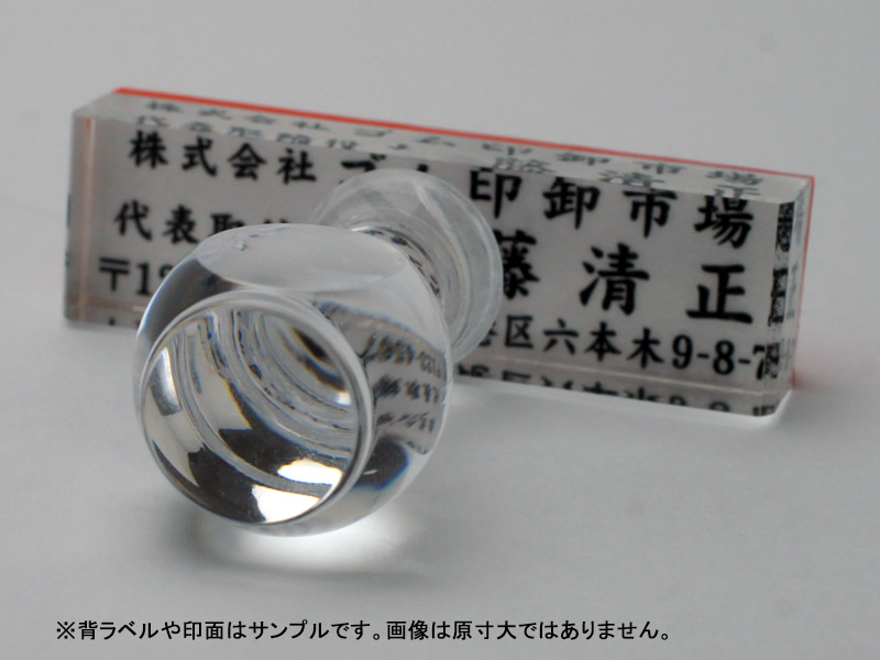 水族館の大水槽などに使われるなど高い透過性や強度を誇るアクリル樹脂を原料にしたプラスチック製の台です。木製の台木に比べ強度が高くメンテナンス性に優れ、透明感のあるおしゃれなゴム印なので会社の住所印におすすめです。