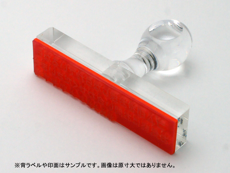 水族館の大水槽などに使われるなど高い透過性や強度を誇るアクリル樹脂を原料にしたプラスチック製の台です。木製の台木に比べ強度が高くメンテナンス性に優れ、透明感のあるおしゃれなゴム印なので会社の住所印におすすめです。