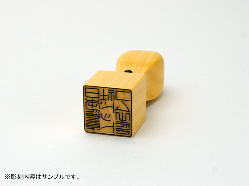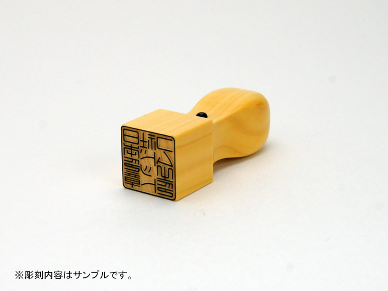植物系の印材としては最も繊維が高く硬度も粘りもあるため彫刻に適した素材である「薩摩本柘」を使用した24.0mmの角印です。柘は成長が遅く、成木になるまでに50年近くかかるため目が詰まりキメが細かく硬質になります。柘には東南アジア産のアカネをはじめ、普及品が多くございますが、当店で使用している柘は国産最高ランクの薩摩本柘のみを使用しております。美しい木目と上品なクリーム色が特徴で、水牛(黒水牛・牛角)や象牙と並んで吉相印材の一つとされ、古くから慣れ親しまれてきました。使用後に朱肉をしっかりふき取る・落下に気を付けるといった取扱いに注意すれば長く使える材質です。